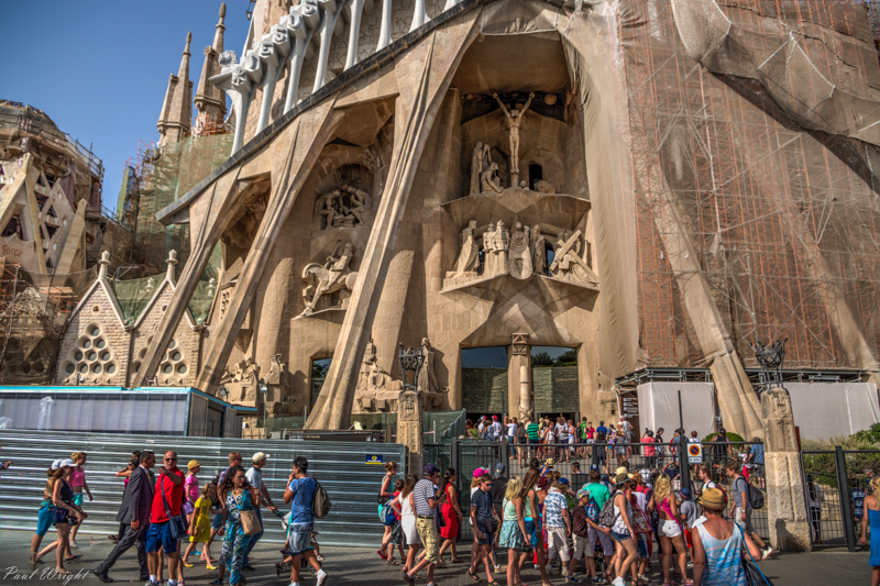 Each day, great numbers of people visit the Sagrada Familia by Gaudi, Barcelona, Spain