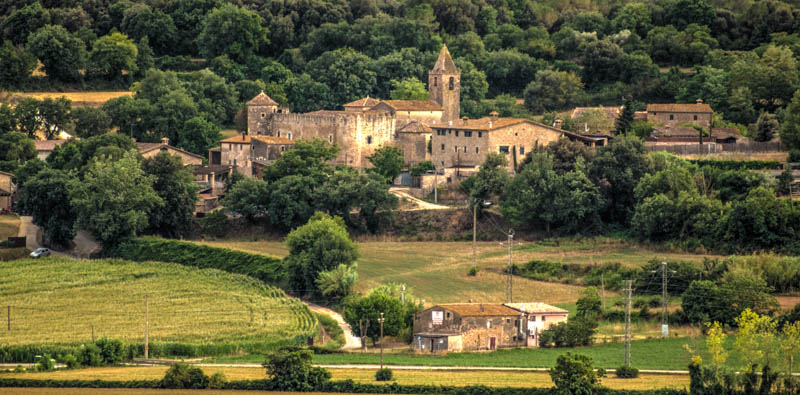 Old villa seen from Can Fabrica, near Banyoles, Spain