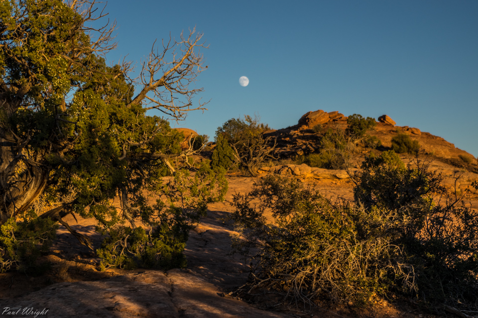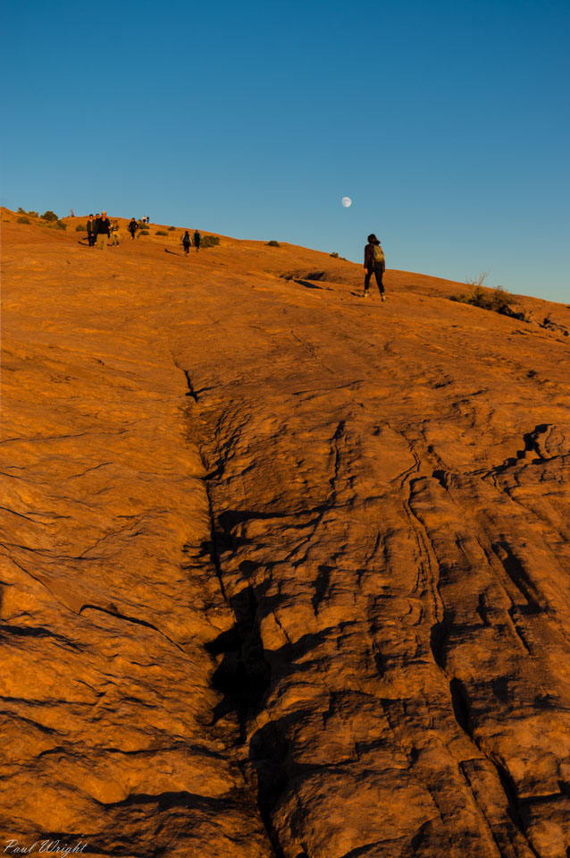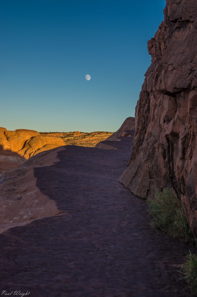 Moon rise on the trail from Delicate Arch, Arches National Park, Utah