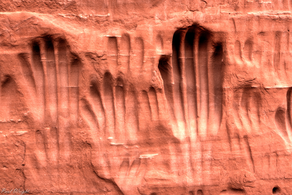 Grooves worn in the soft rock at Indian Cave, Kodachrome Basin, Utah