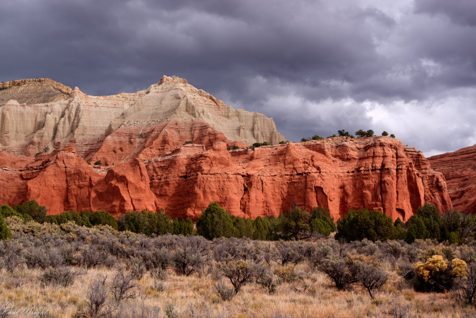 Desert foliage and colourful hills, Kodachrome Basin, Utah