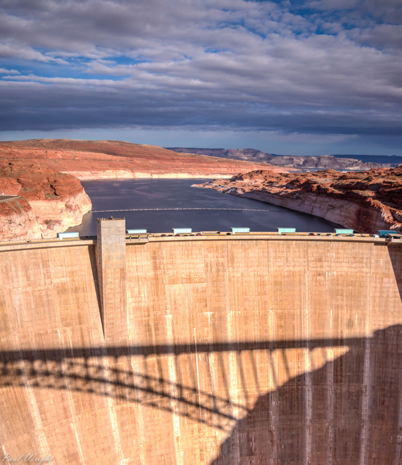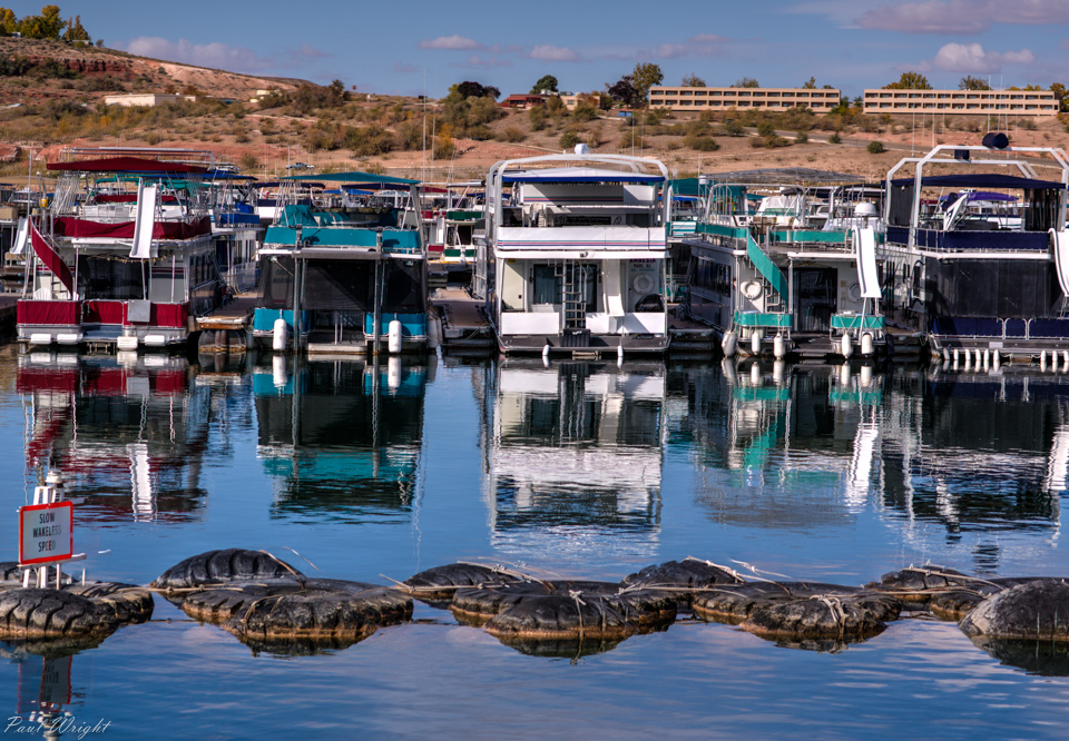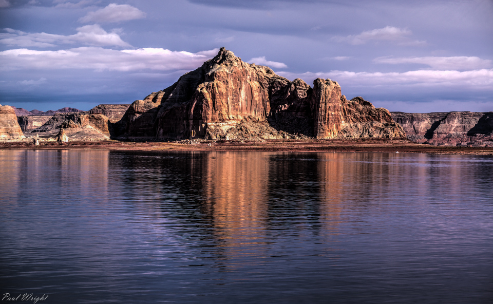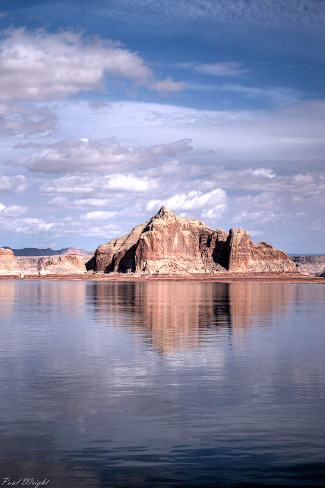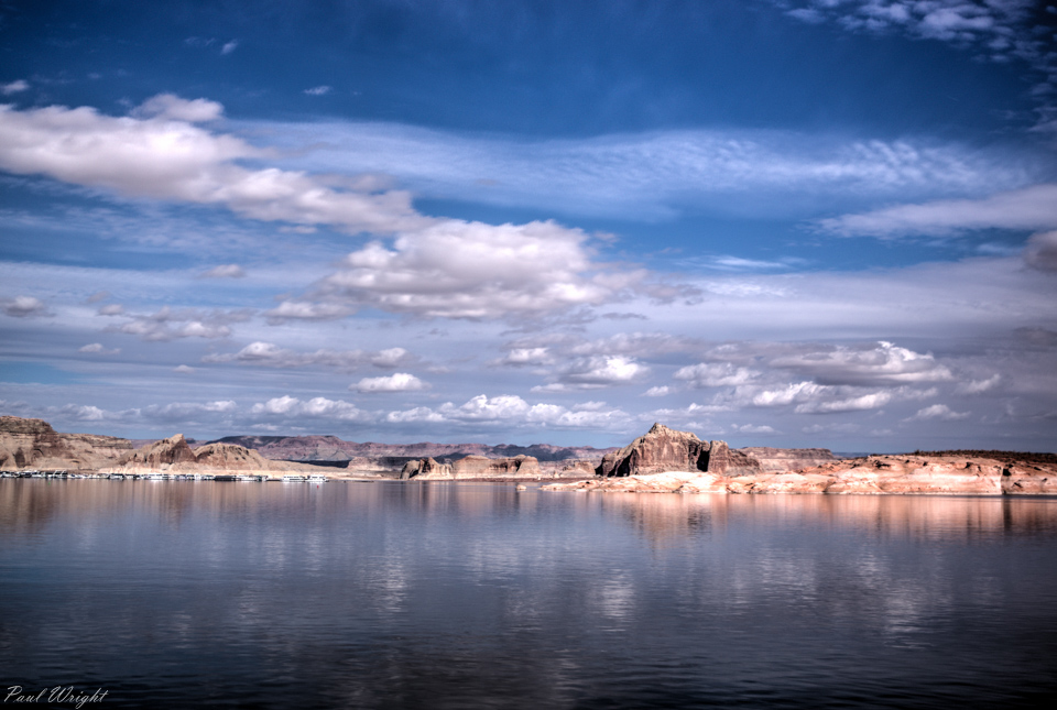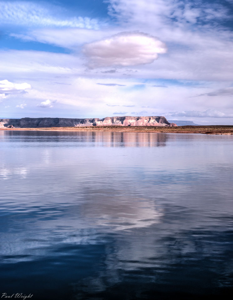 Tranquil water, mountains and clouds, Lake Powell, Arizona