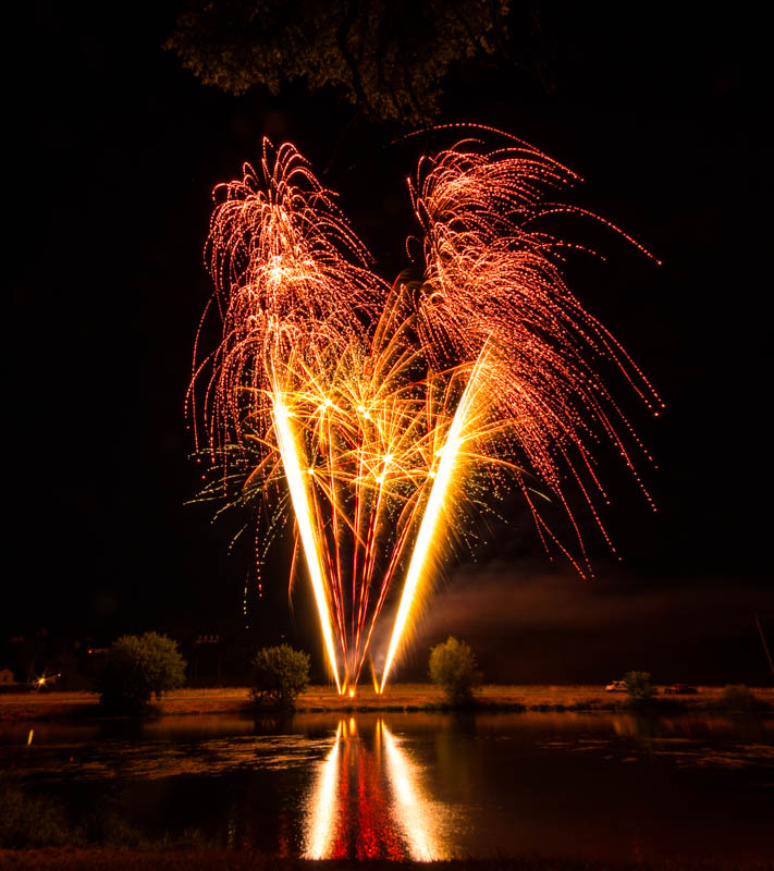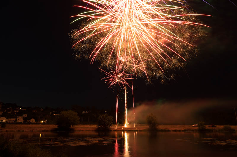 Bastille Day celebration fireworks, Saint-Georges-sur-Cher, Loire-et-Cher, France
