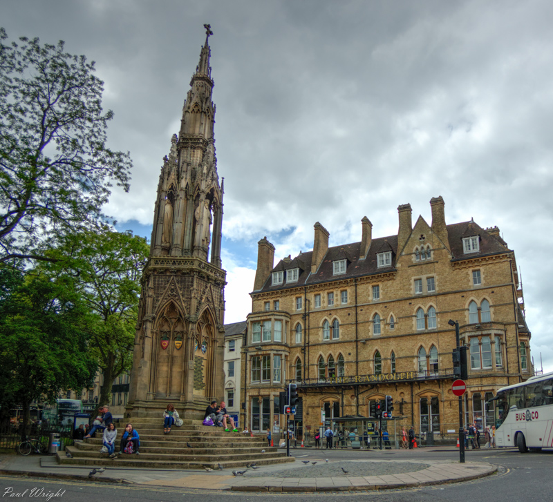 Martyrs Memorial and the Randolph Hotel, Oxford, UK
