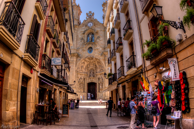 Kale Nagusia leading to Iglesia de Santa Maria, San Sebastian, Spain