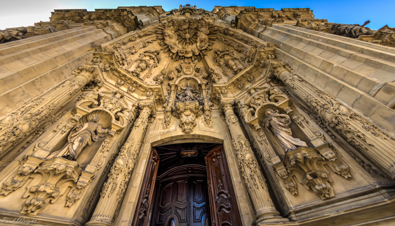 Detail above the doors of Iglesia de Sant Maria, San Sebastian, Spain