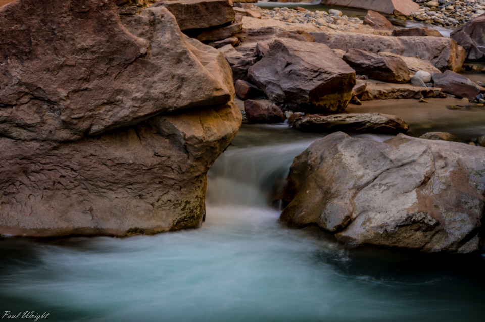 The Virgin River rushes through the rocks, Zion National Park, Utah