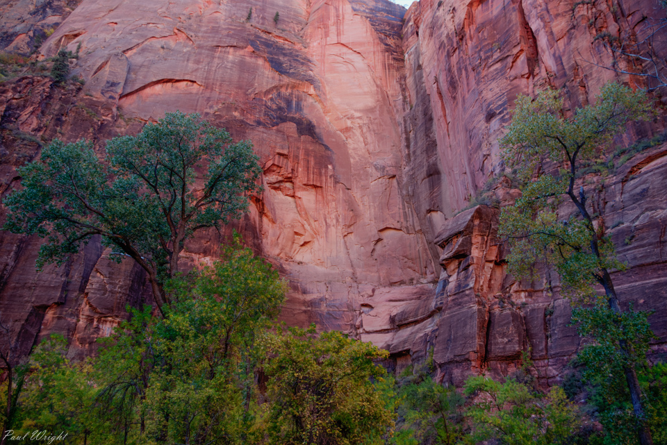 Early autumn trees and red rock walls in Zion National Park, Utah