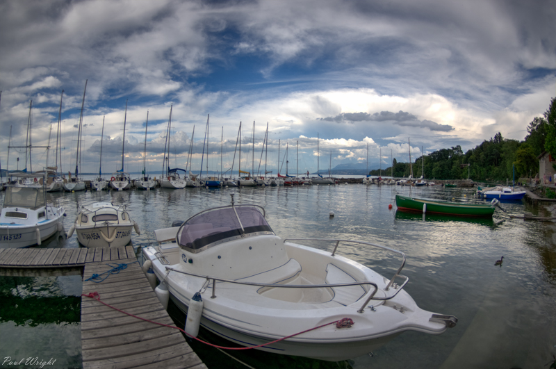 Boats and clouds, Yvoire, on the shore of Lake Geneva, France