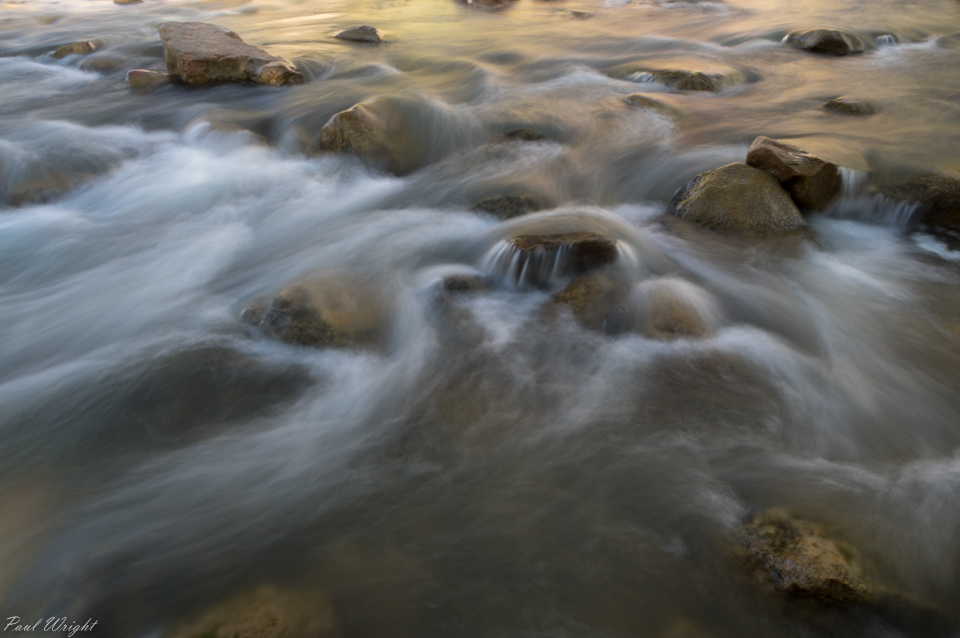 Water cascades in the Virgin River, Zion National Park, Utah